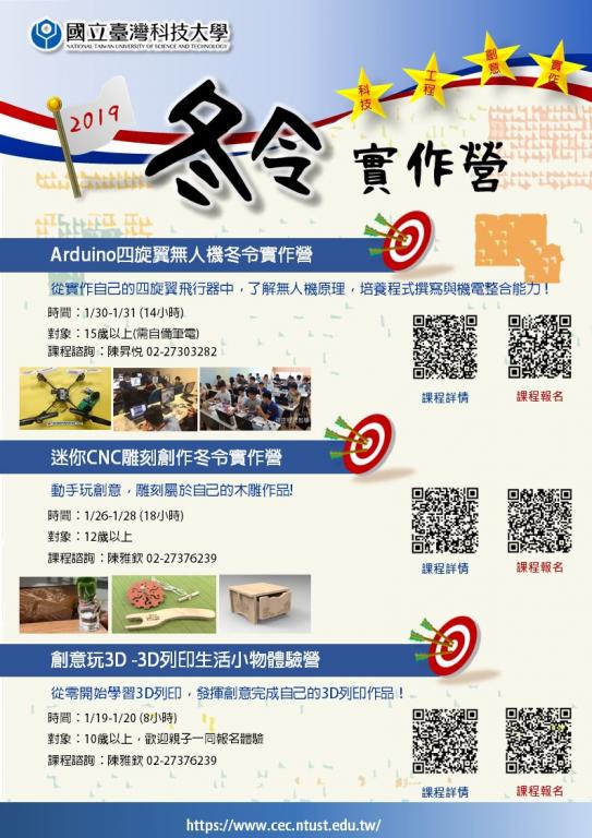 » 轉知國立台灣科技大學冬令營~~鼓勵本校同學踴躍參加