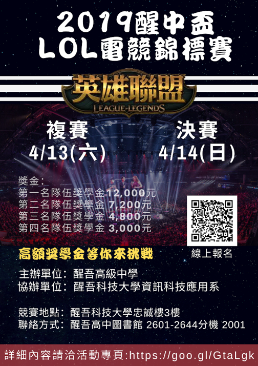 新北市私立醒吾高級中學「『英雄崛起、唯我獨醒』第一屆醒中盃國中LOL(英雄聯盟)電競錦標賽」活動
