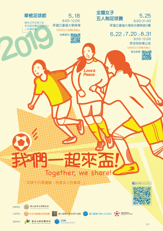» 台北市歡樂足球協會「2019年我們一起來盃!」 草根足球節暨全國女子五人制足球賽