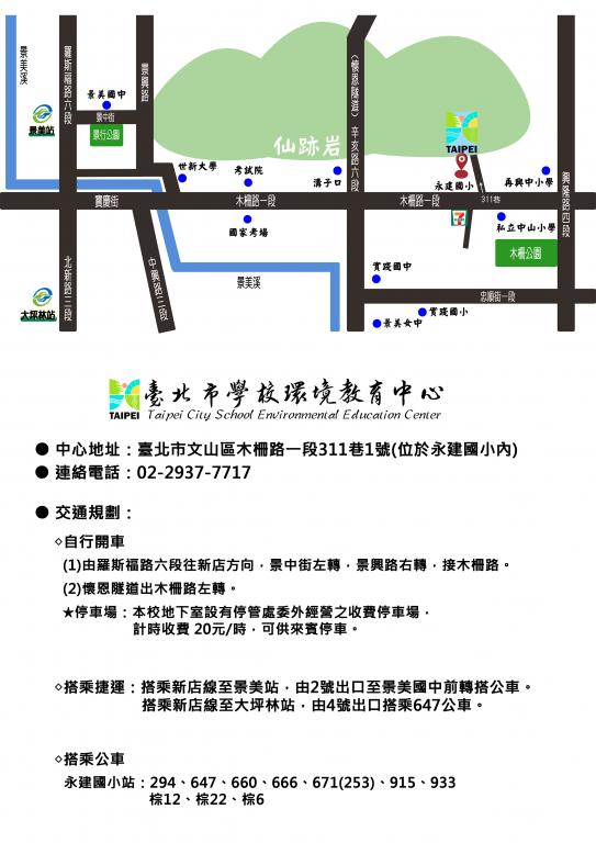 (二)研習地點:臺北市文山區木柵路一段311巷1號永建國小演藝廳(請由靠近公車站的門口進入演藝廳)